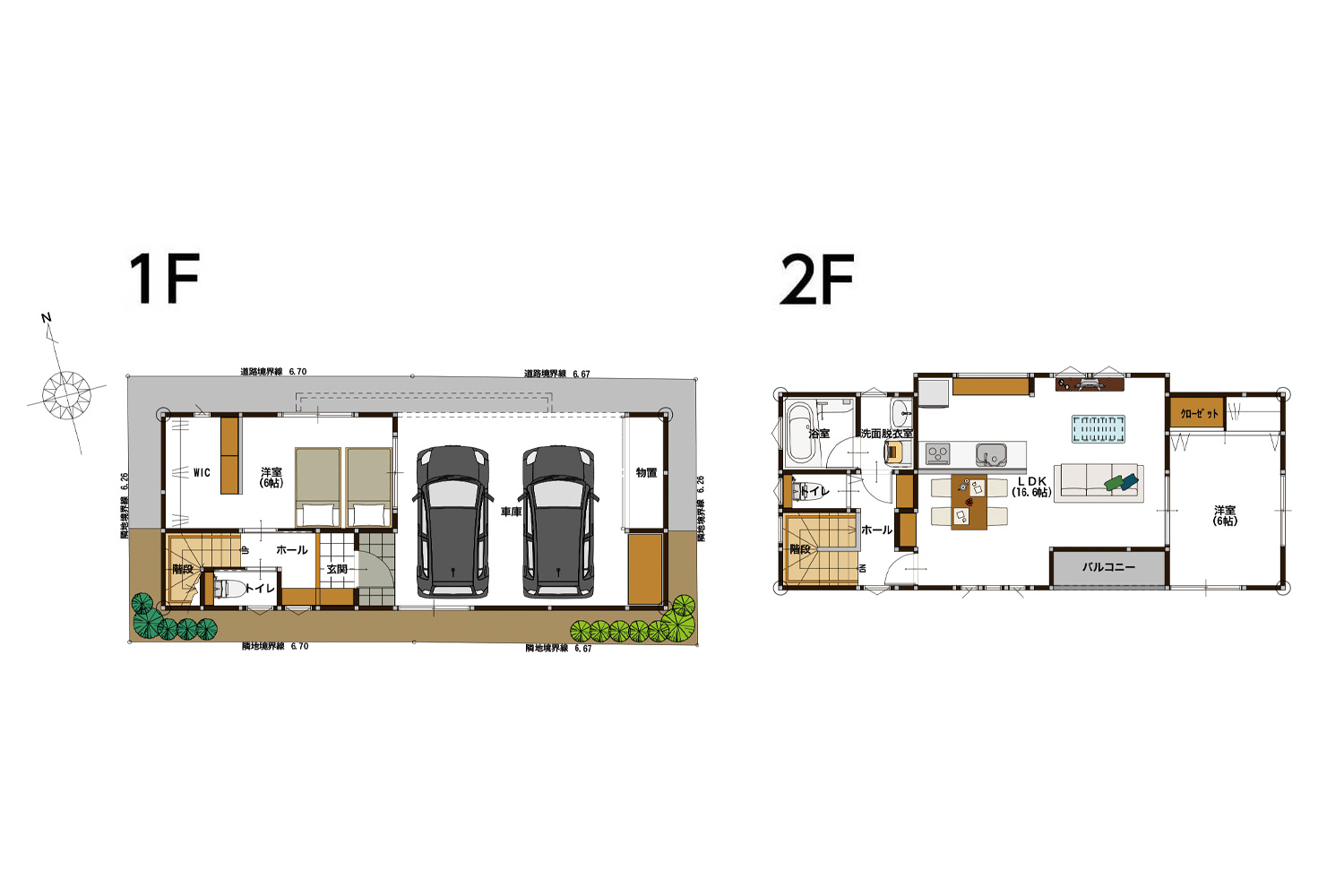 2LDK、ビルトインガレージ2台分!