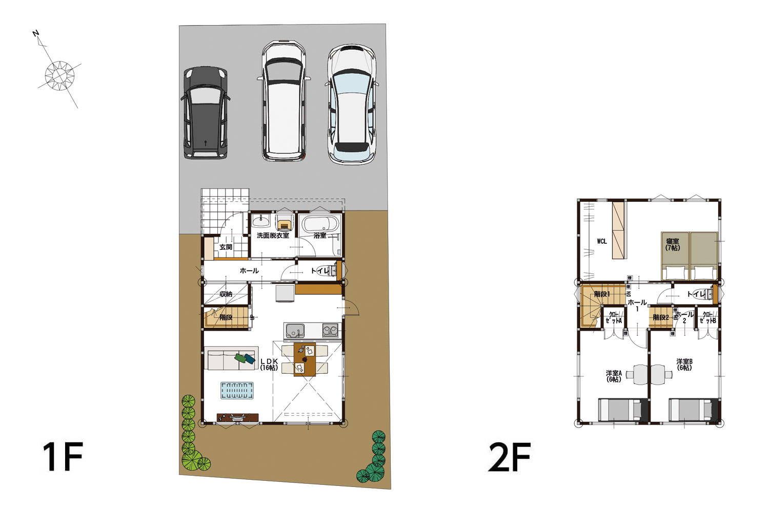 3LDK+WIC エコジョーズ住宅 駐車場3台分