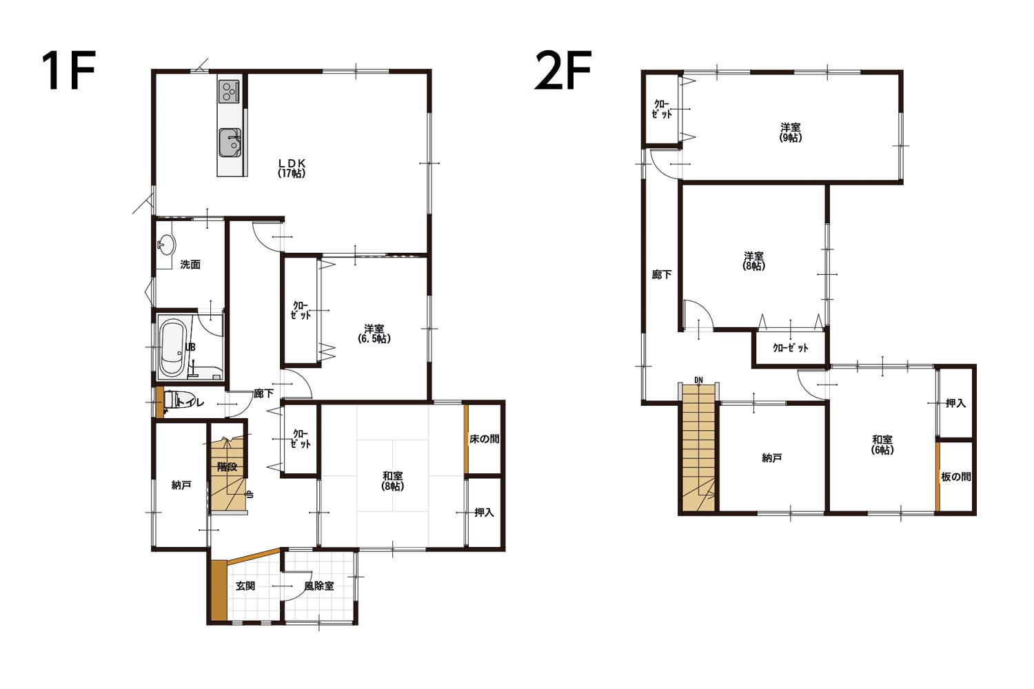 ●内装クロス全面貼替 ●内装ドア(クローゼット扉を含む)5箇所交換 ●1階フローリング貼替 ●和室畳新畳に交換